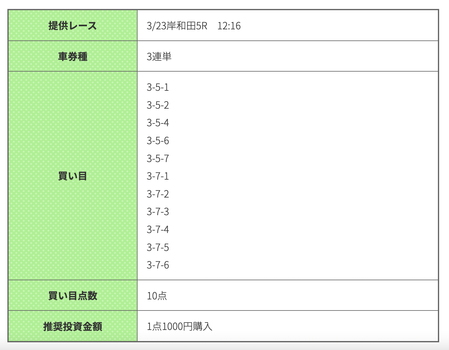 岸和田5Rは競輪ギアが予想、1着3番・2着5・7番での予想ですが、結果は128番人気の1-6-5(488.5倍)でした。