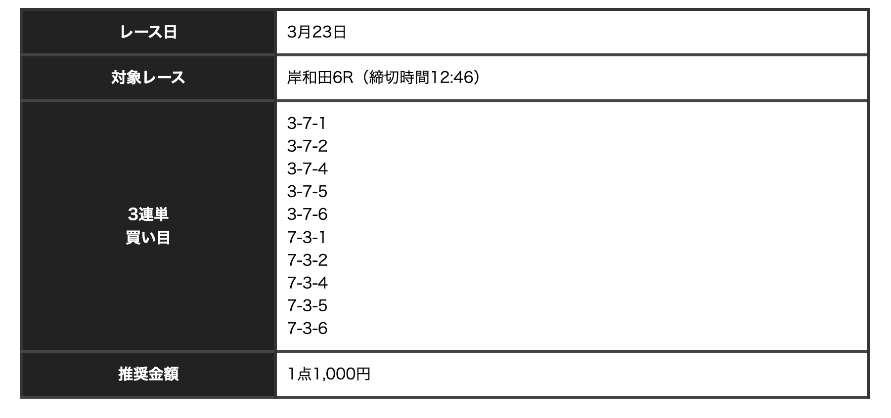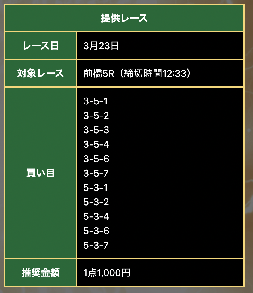 この日唯一の前橋会場予想は競輪ライジン。結果は6-4-1で1310倍(171番人気)という大荒れ。これはさすがに…。