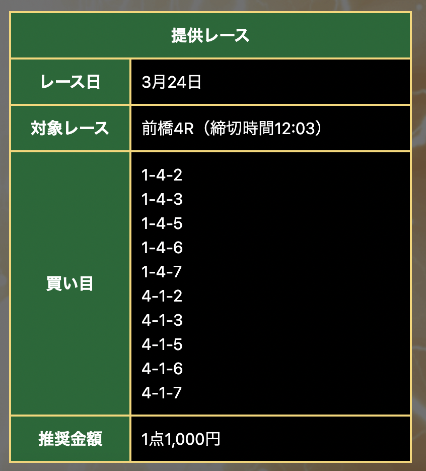 大宮会場を選択したのは轟。結果は1番人気の7-1-4、2.2倍でトリガミ。固い決着で的中はしたものの、払戻は雀の涙…。