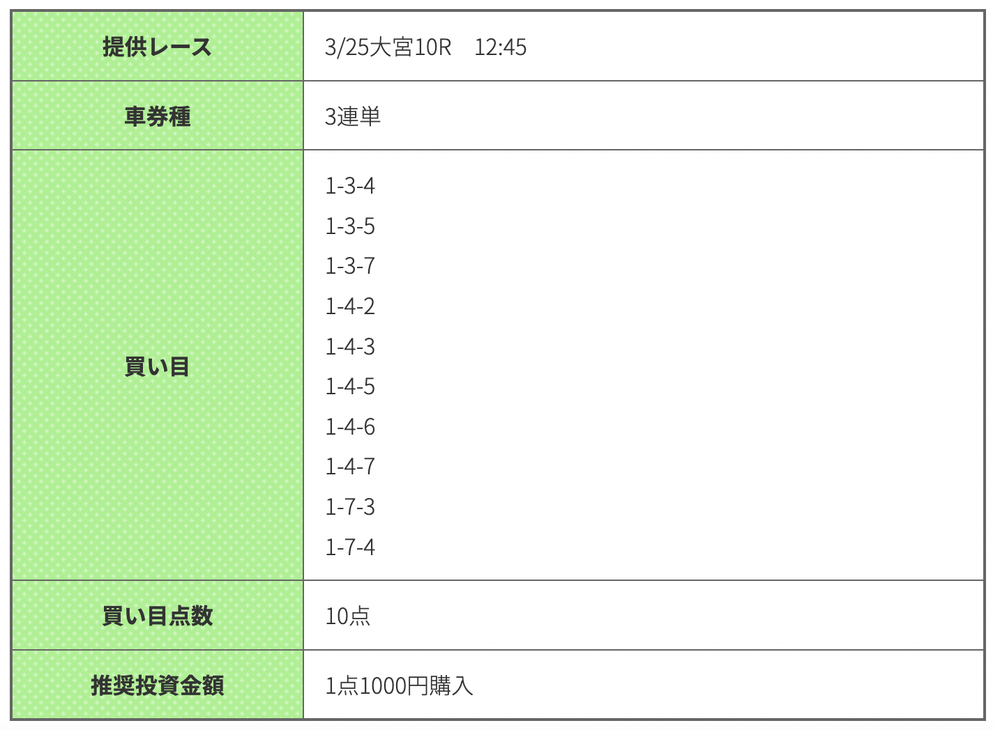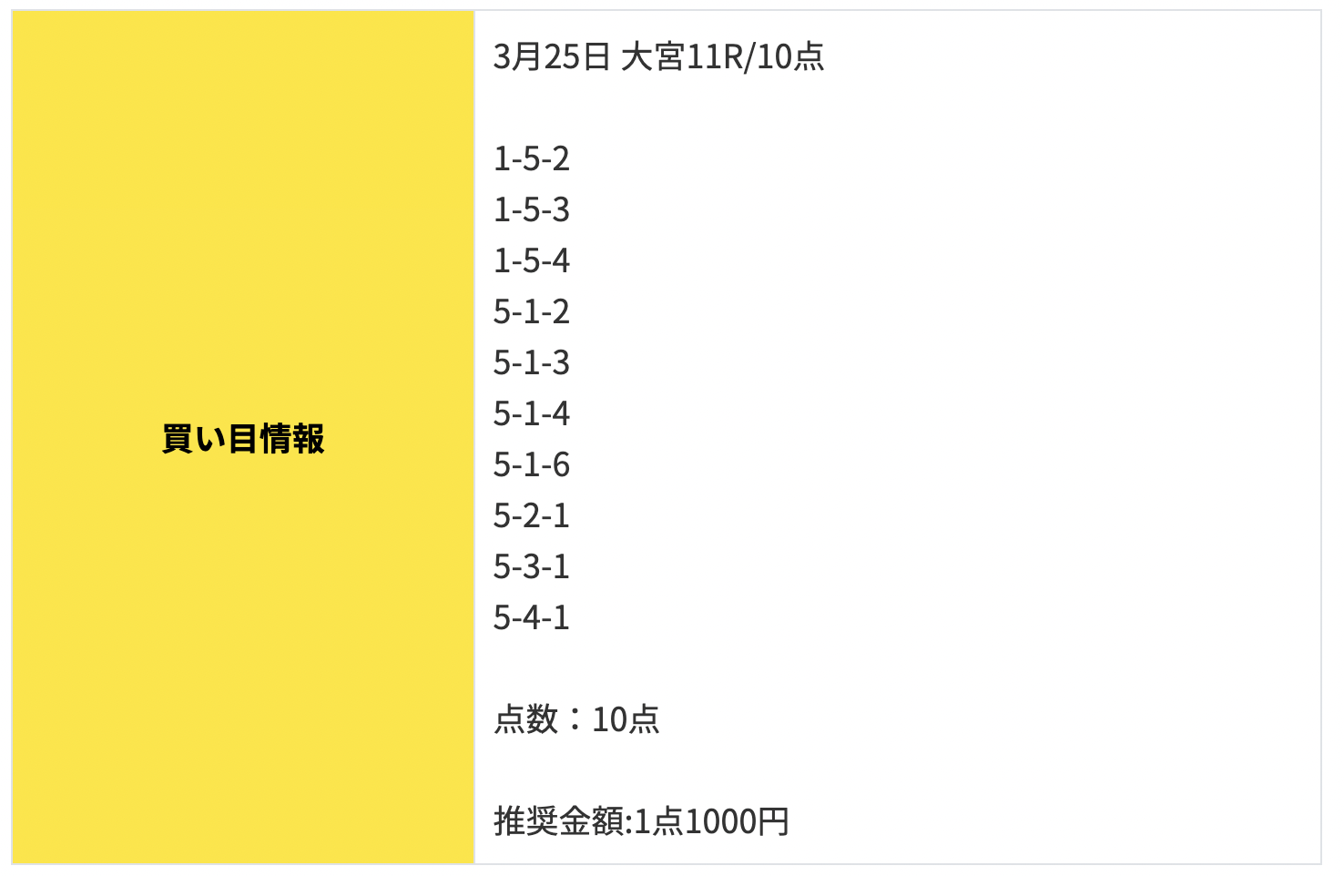 大宮11Rは轟(上)と虎の穴(下)が予想。5番と1番を軸にした予想で、虎の穴は1着5番固定と強気の予想。結果は5-1-3で13.4倍、13,400円の払戻でした。虎の穴は6点×1,000円とお手軽な予想から楽しめるのが特徴ですね。