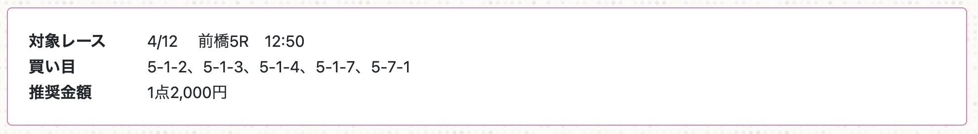 スタート轟は無料予想の提供を確認できませんでした。