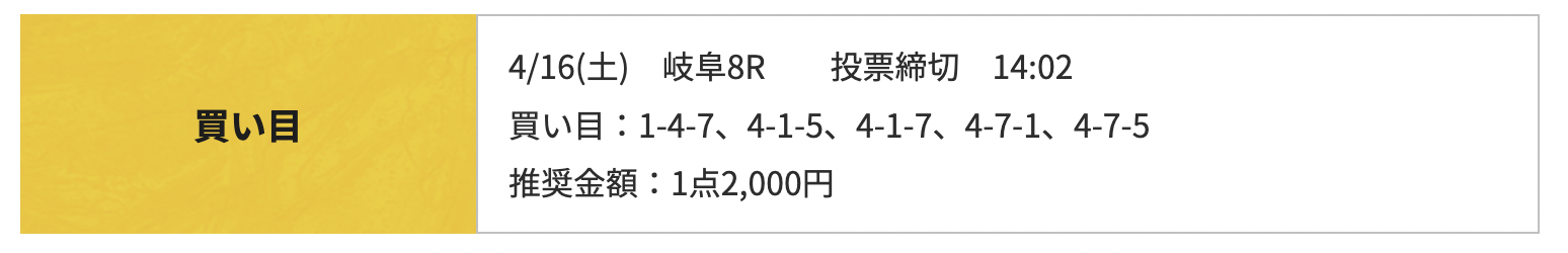 岐阜8Rは競輪RIDEが予想。結果は4-5-6、66番人気の458.6倍で不的中でした。