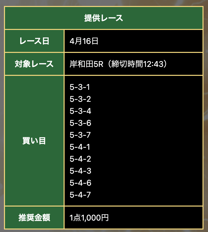 唯一の川崎会場予想は競輪神ヒトエ。5Rの結果は、19番人気の2-7-6(67.8倍)で不的中でした。